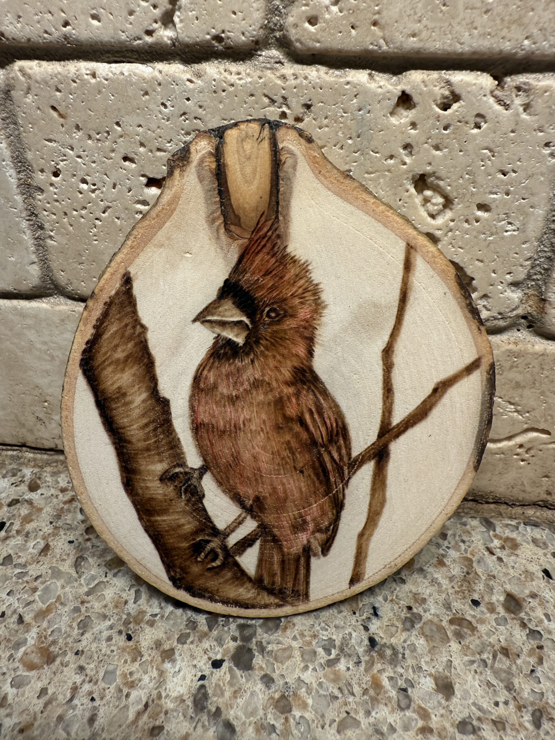 color added to enhance pyrography