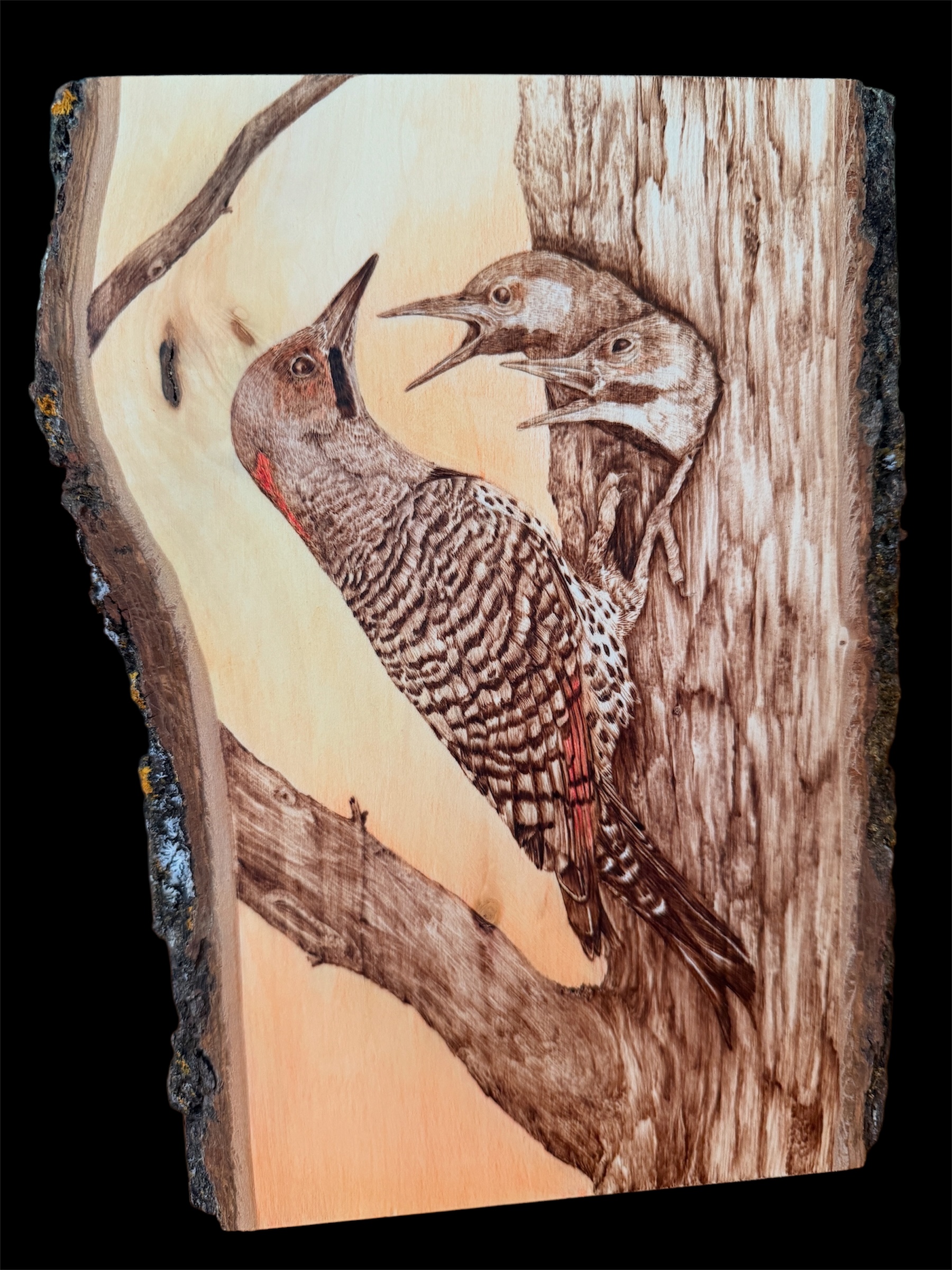 woodburned by hand with love on a live edge slab of basswood